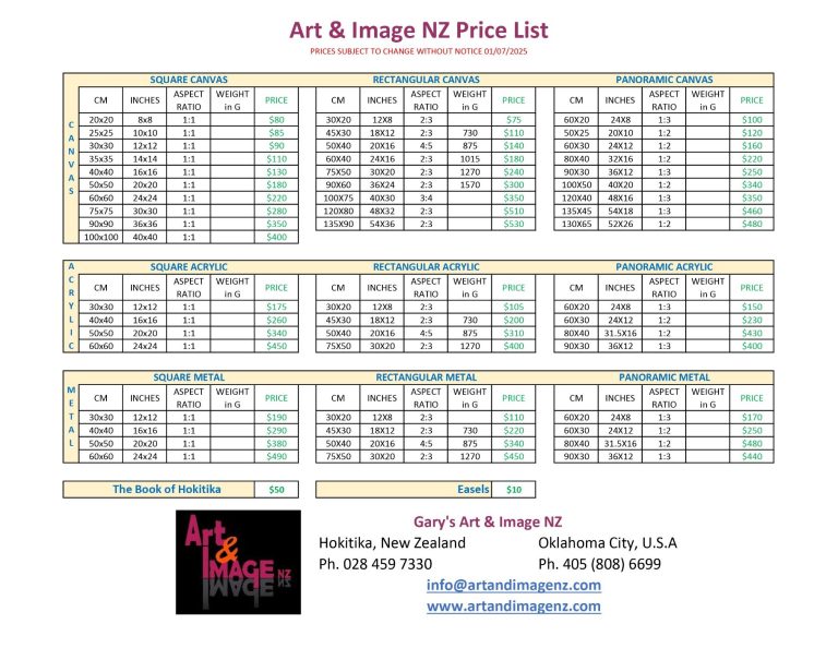 Gary's “Art & Image NZ” is a unique collection of art and images from selected artists in Hokitika, New Zealand and abroad.